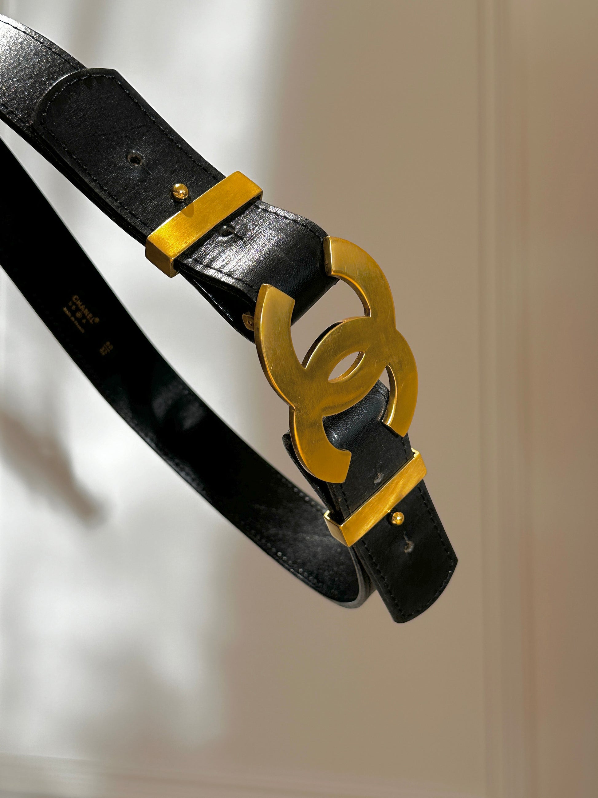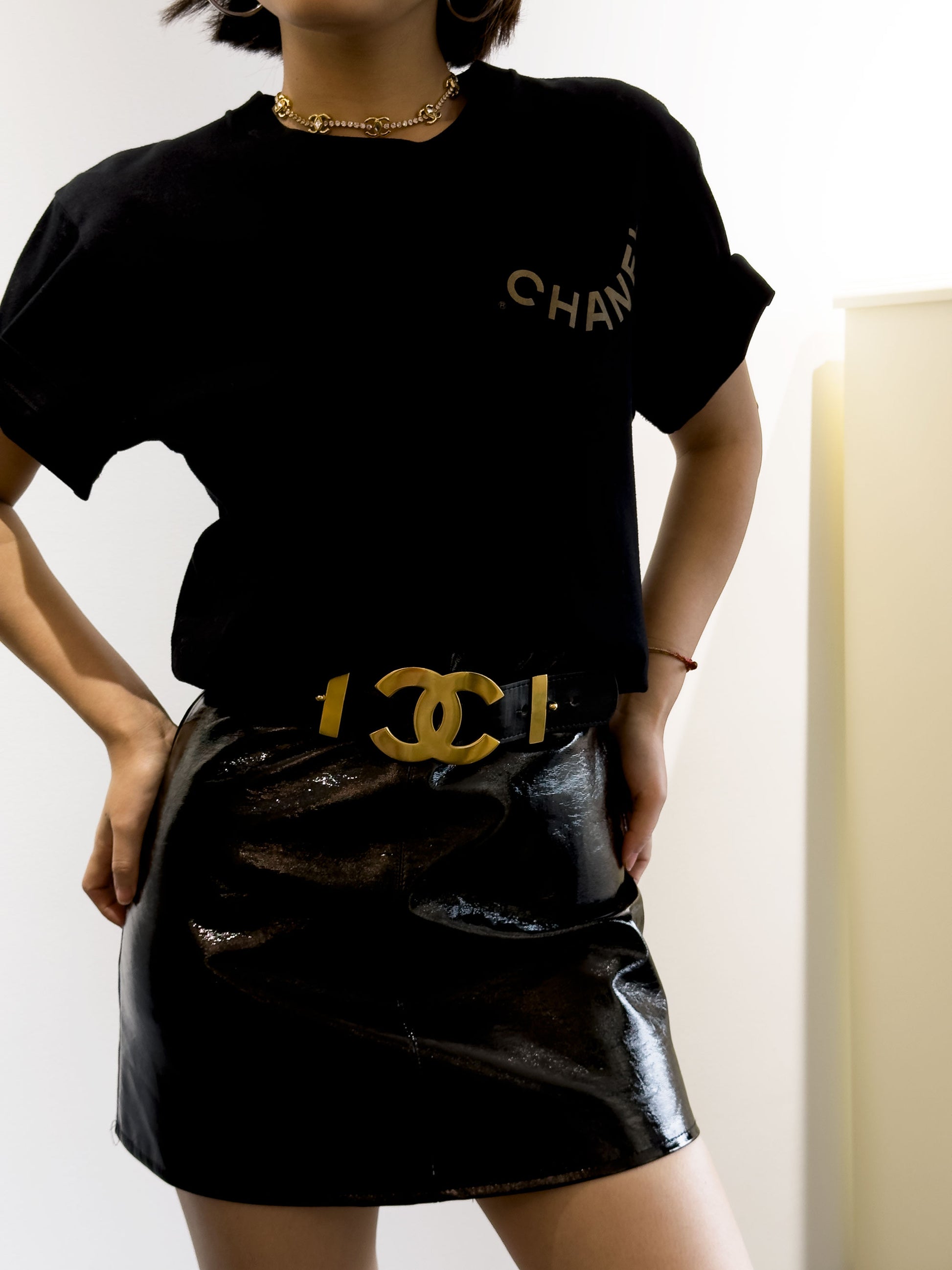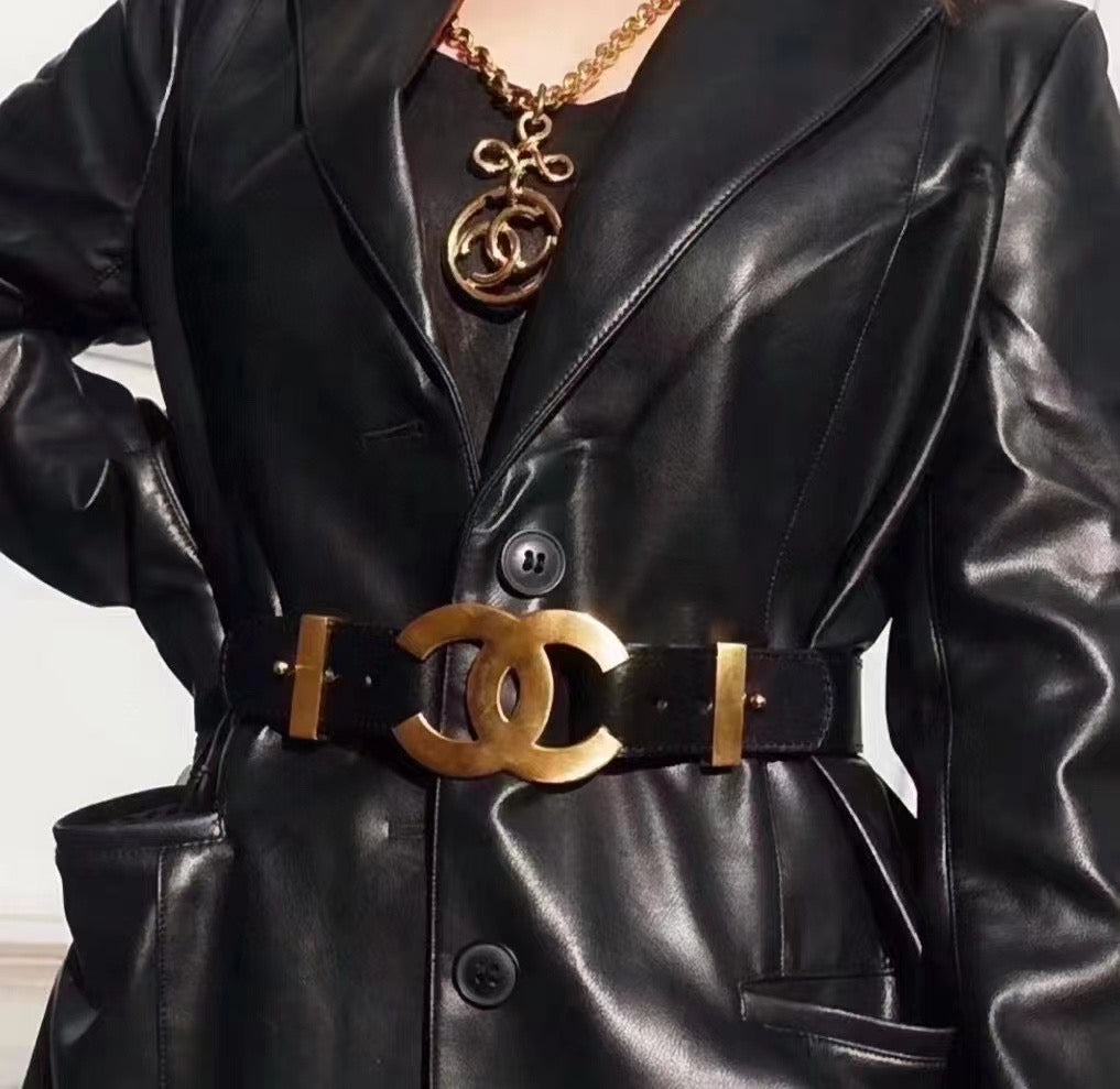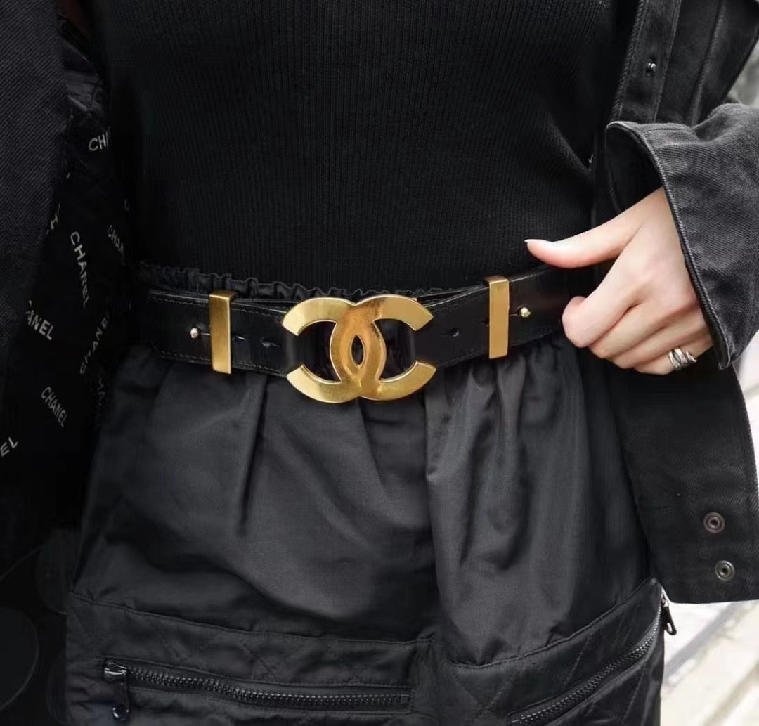 Chanel black wide waistband with gold oversized logo