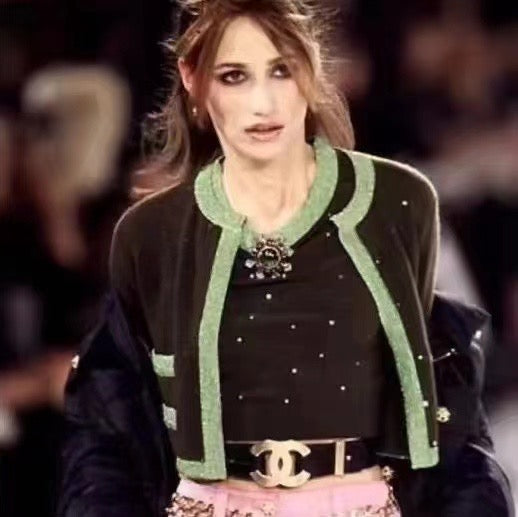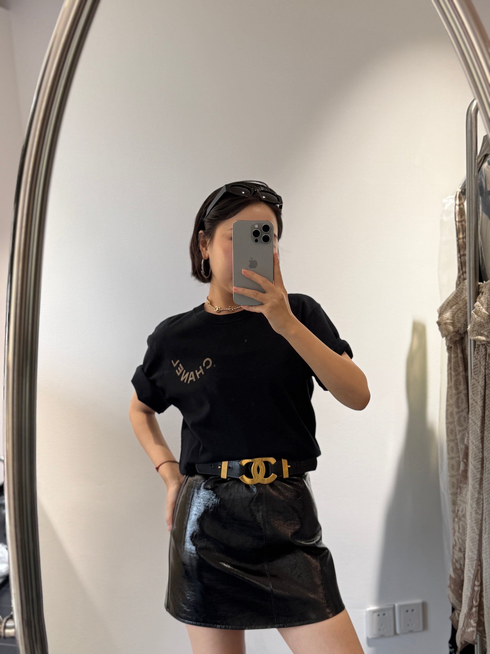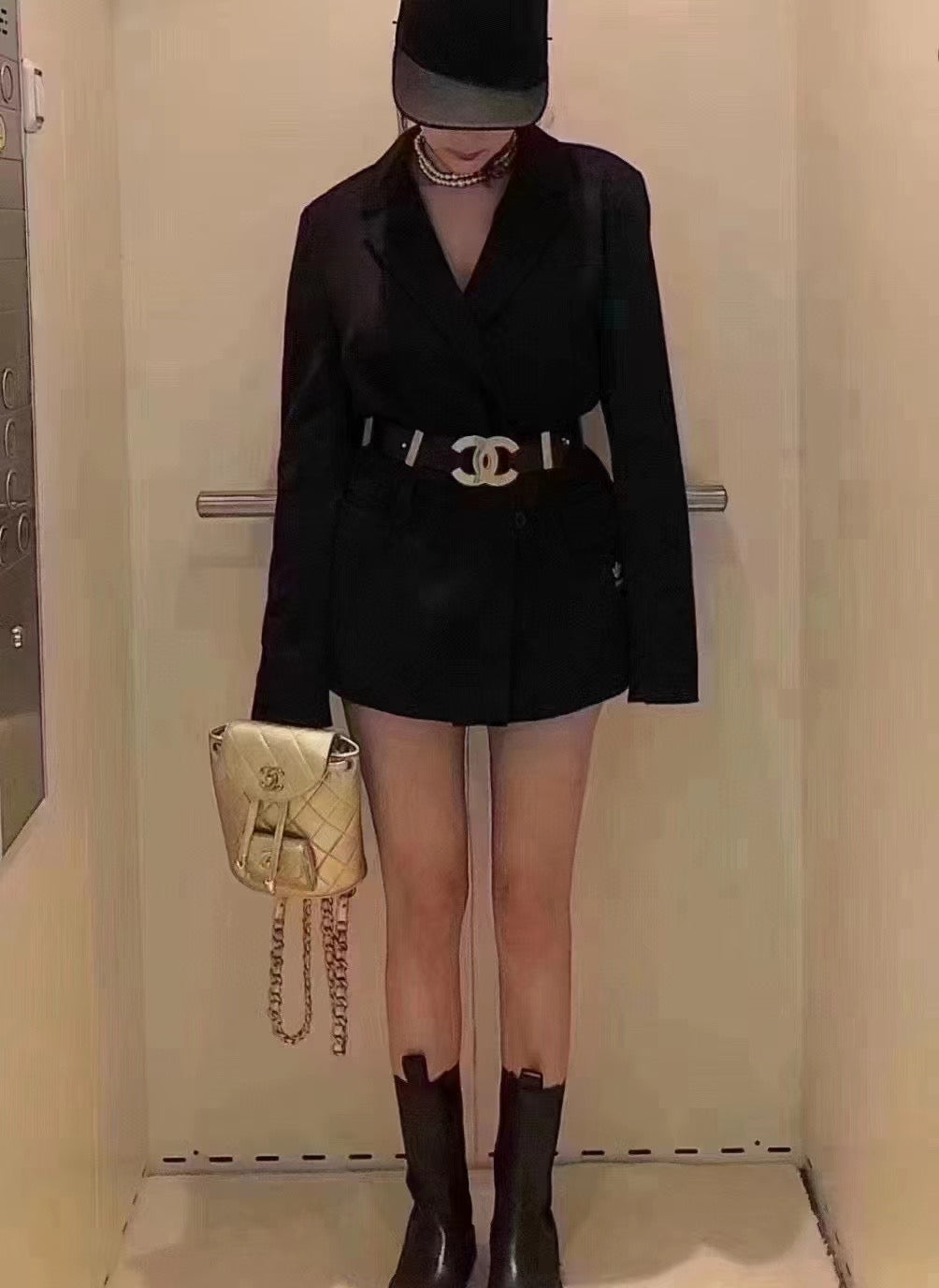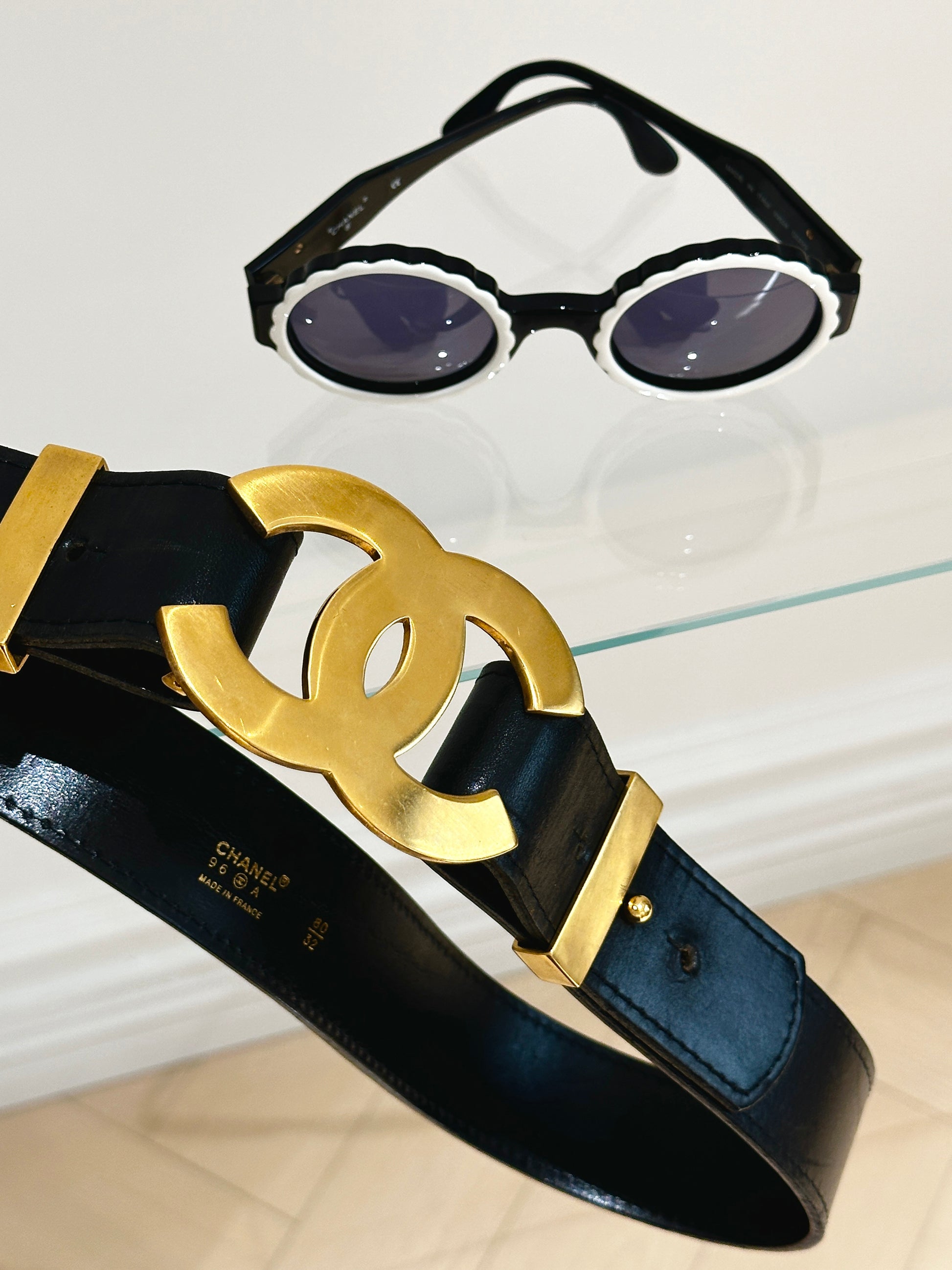 Chanel black wide waistband with gold oversized logo