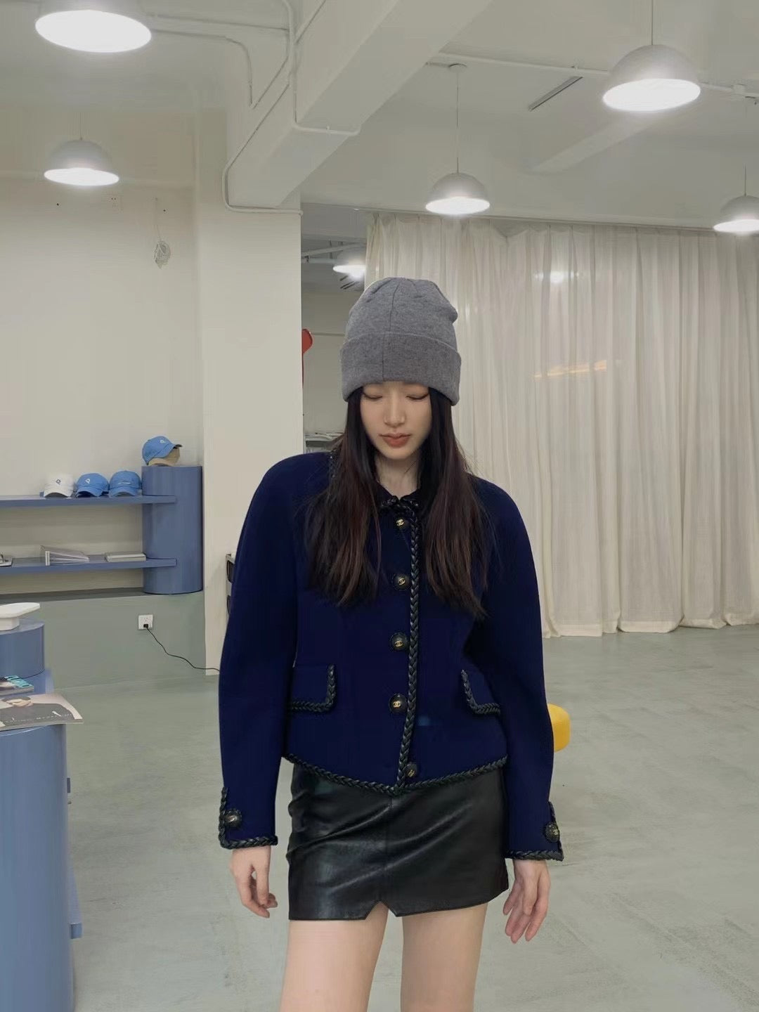 Chanel Blue Purple Leather Lock Edge Coat Size:40