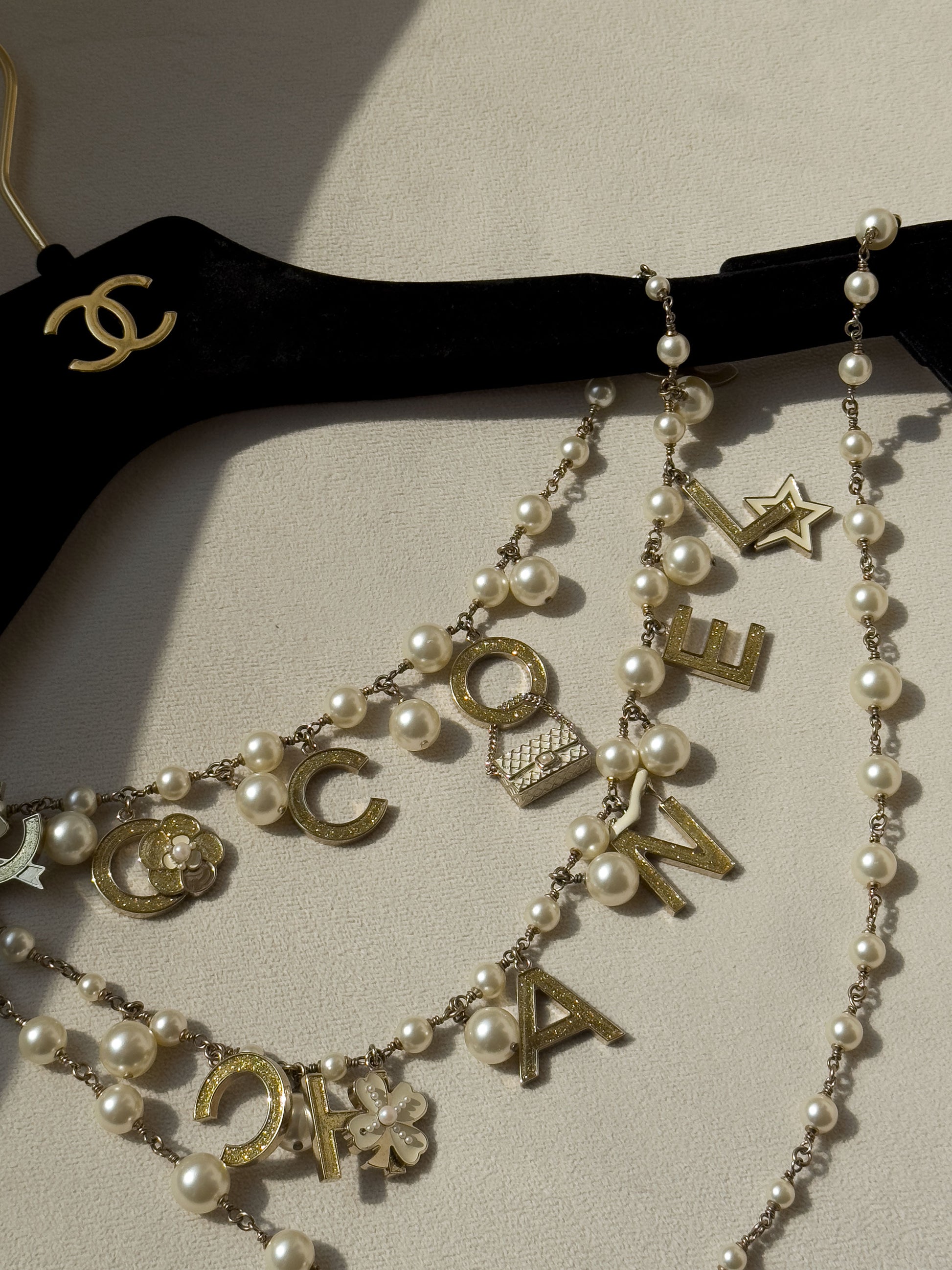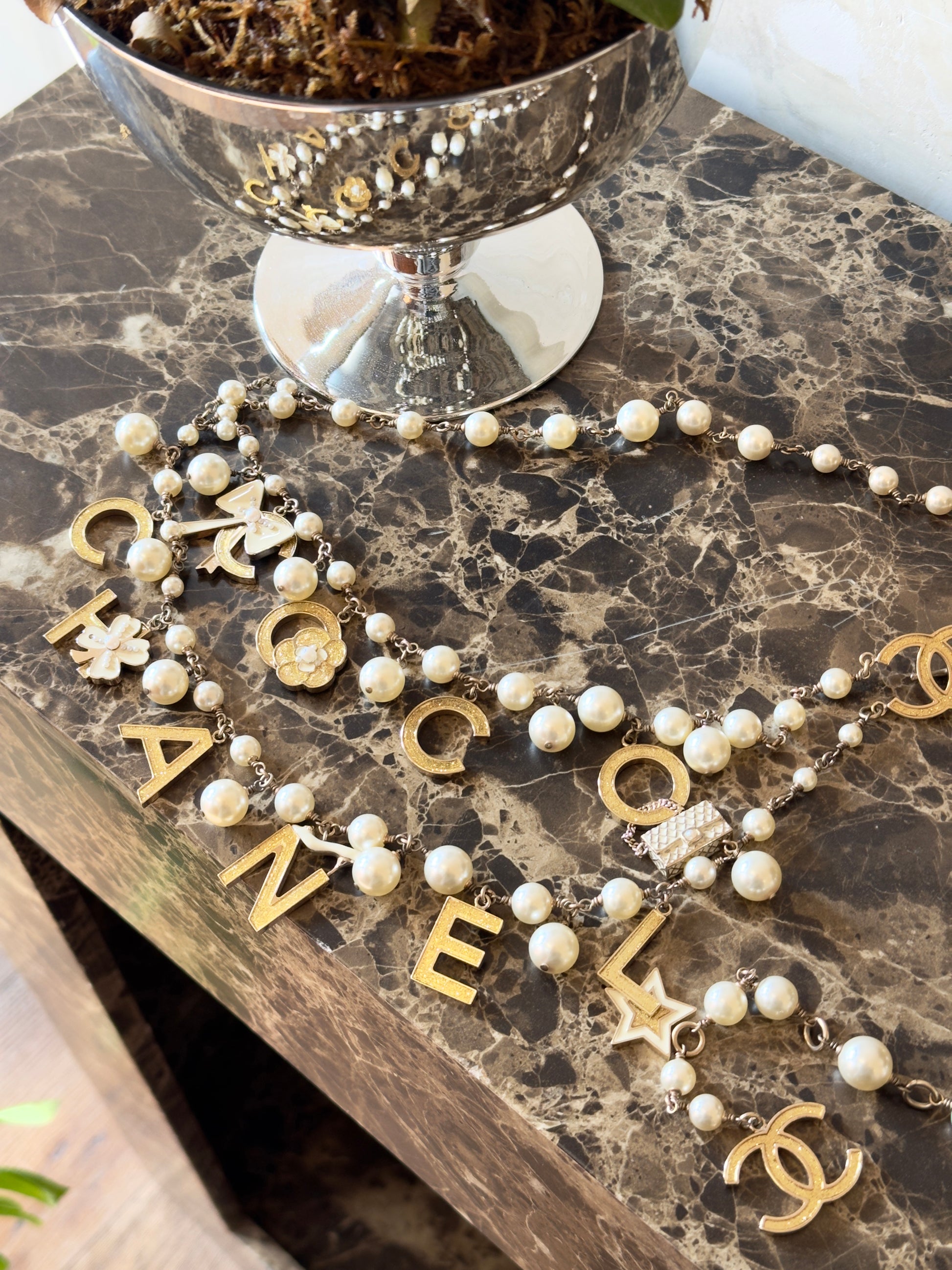 Chanel Christmas limited edition pearl letter enamel waist chain