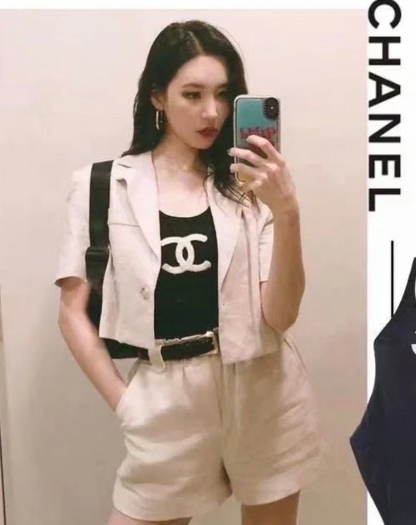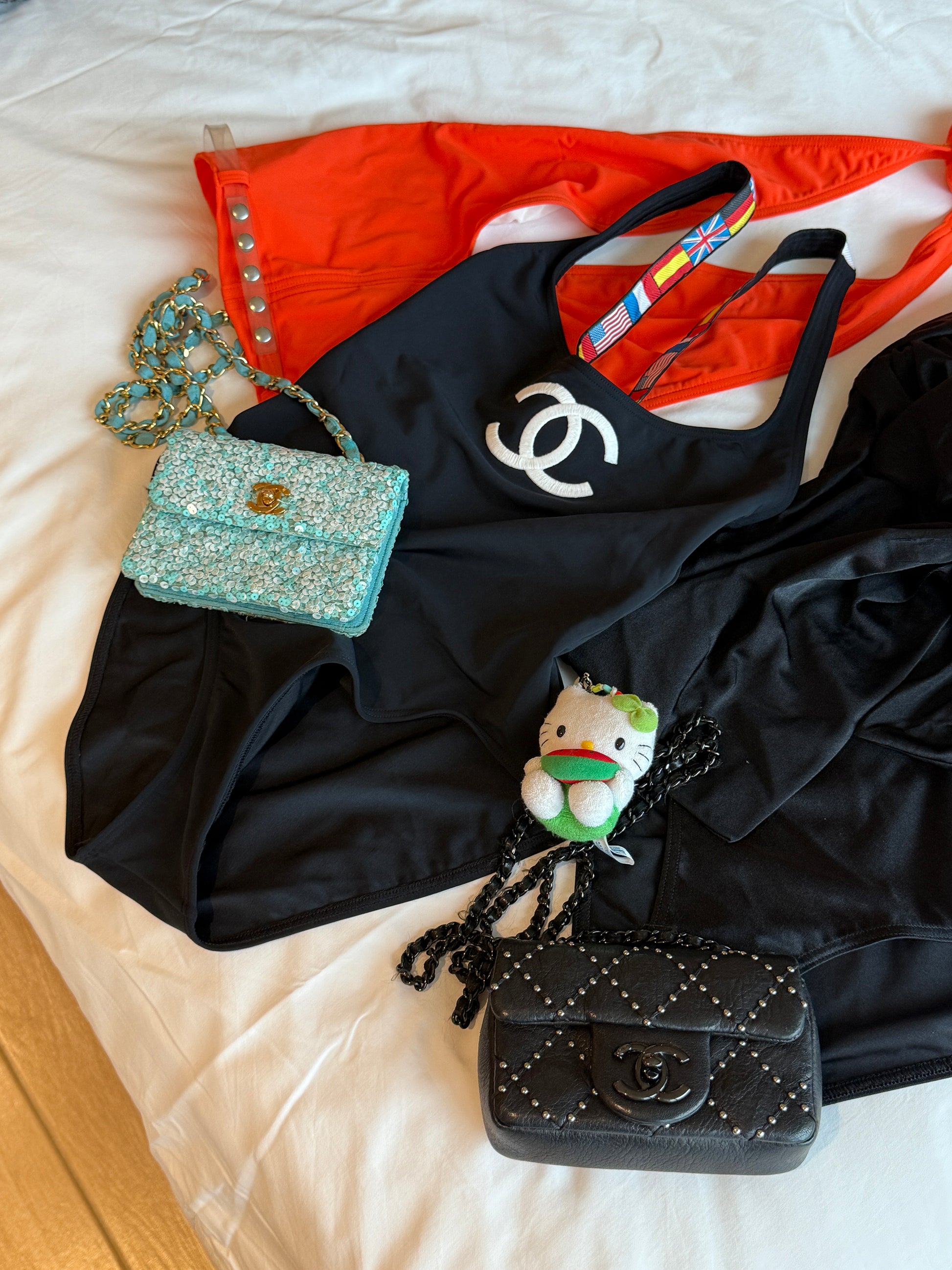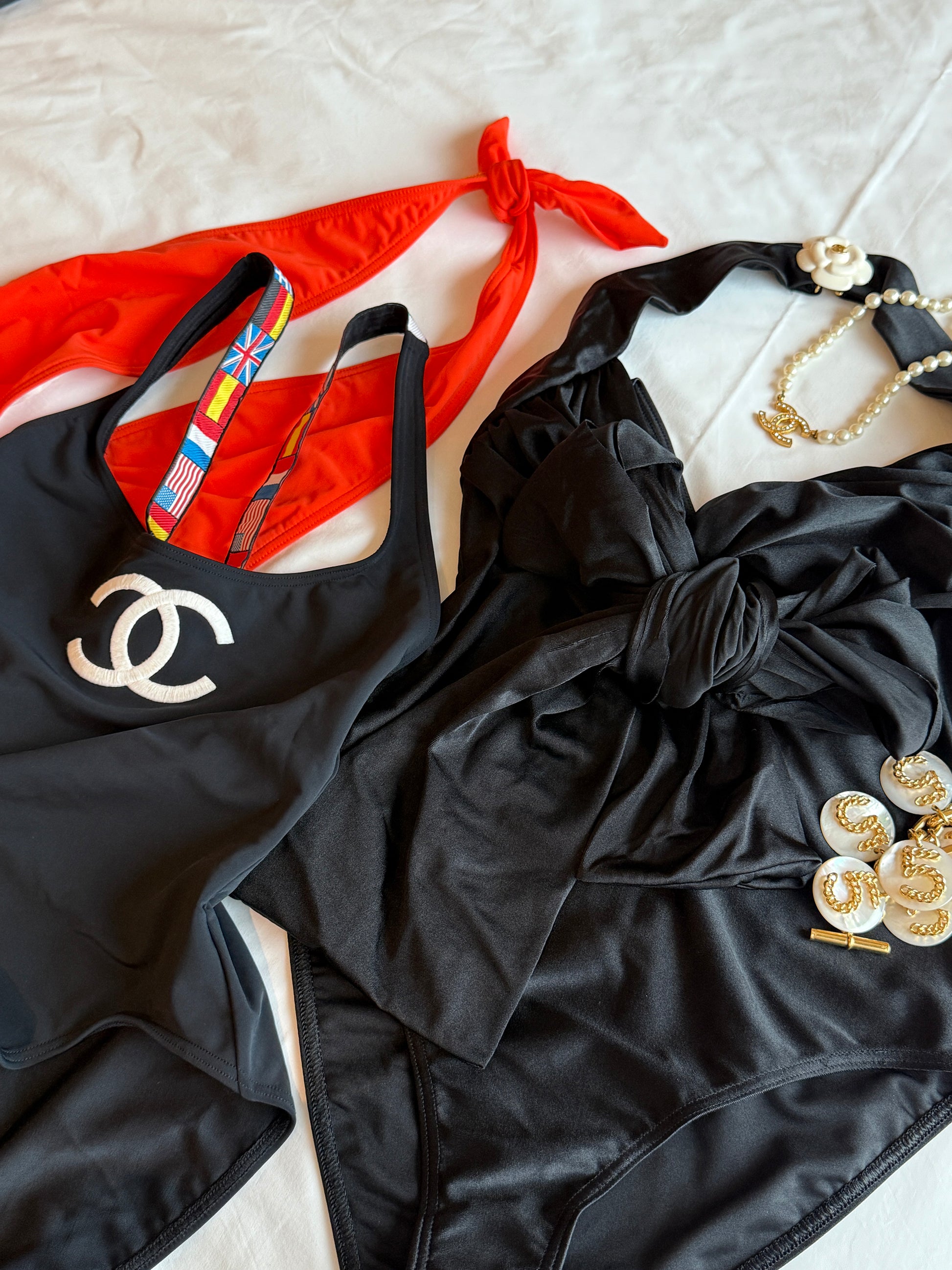 Chanel flag shoulder strap black logo swimsuit Size:36