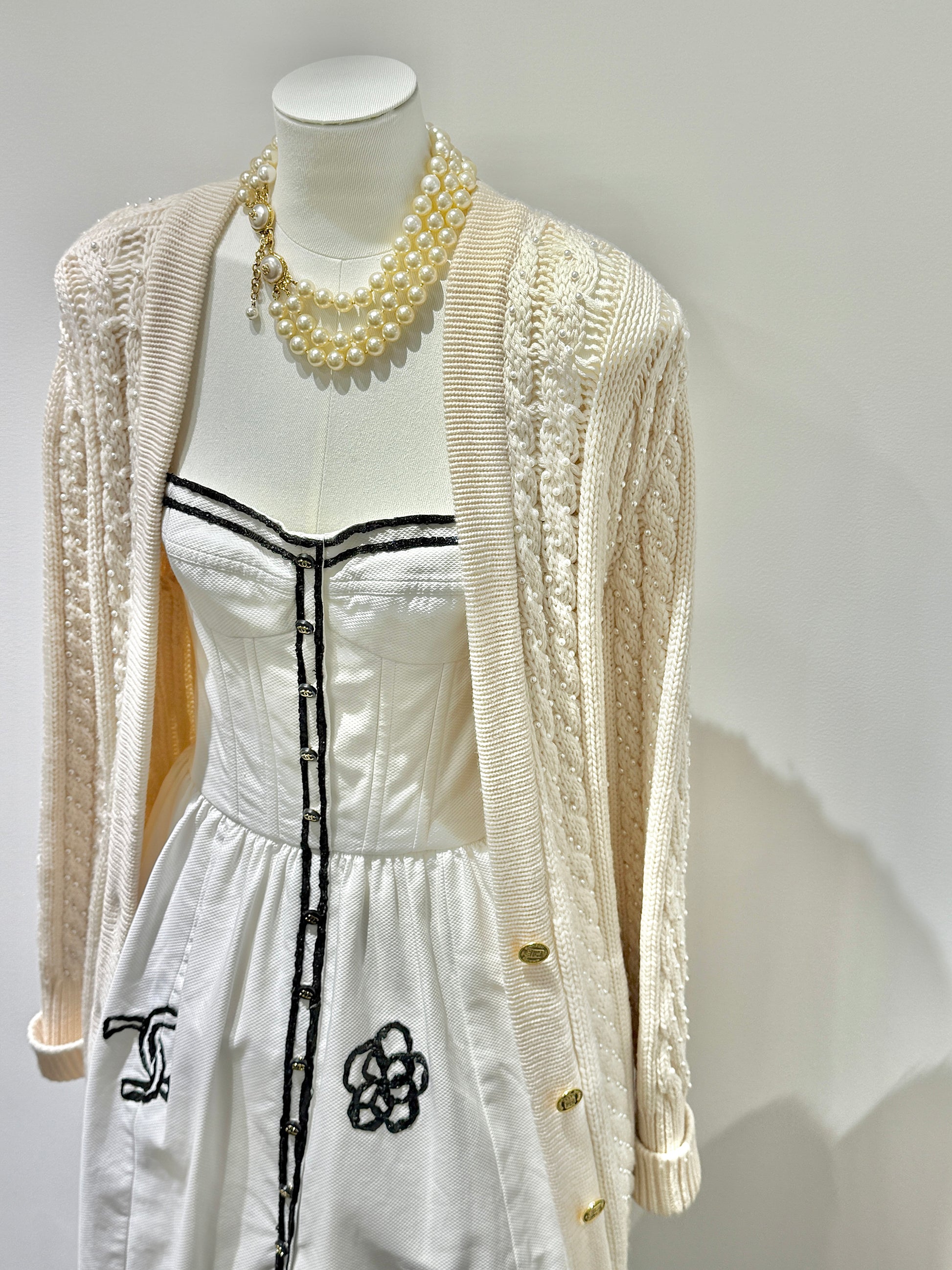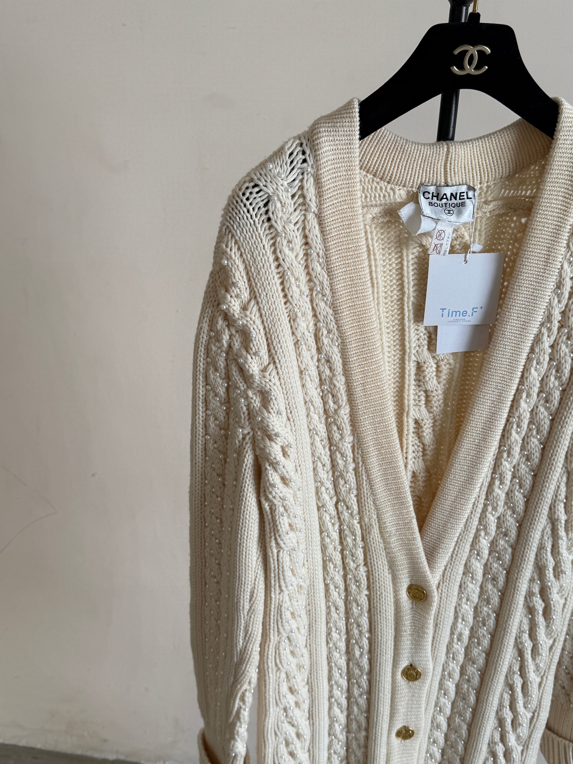 Chanel Rare Show Pearl Long Hair Coat Size:38