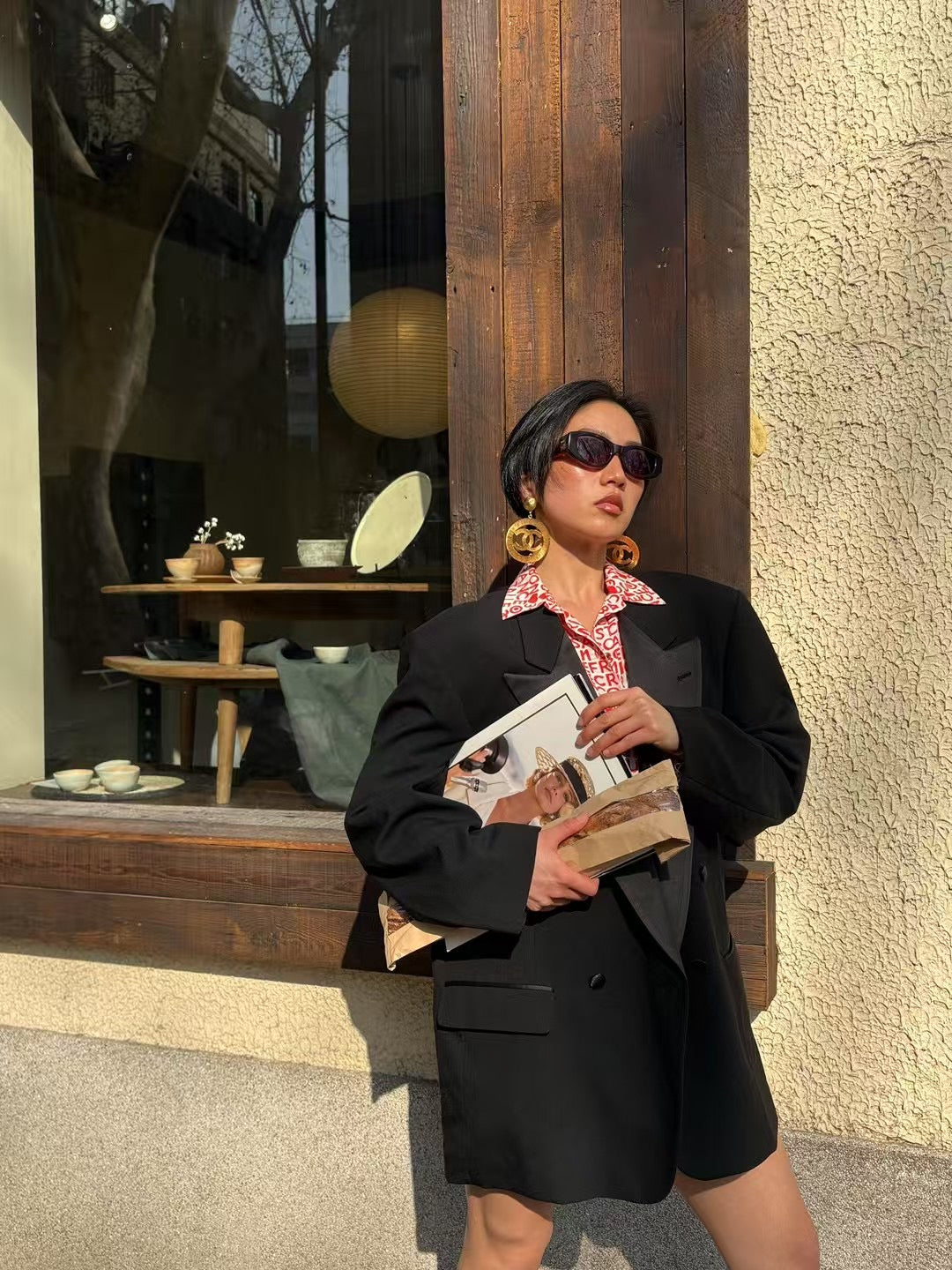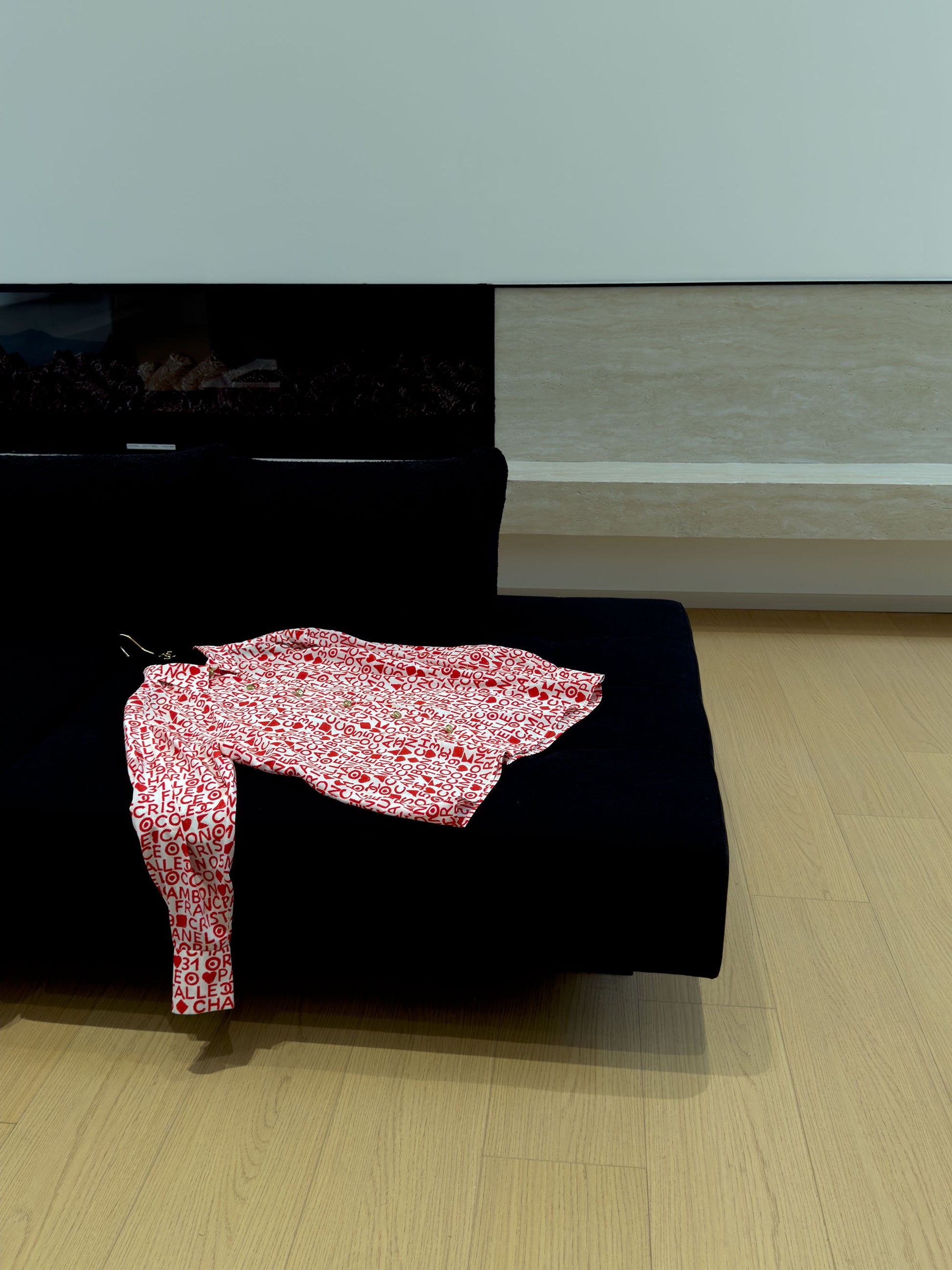 Chanel Letter graffiti Red silk shirt from the 1980s Size:38