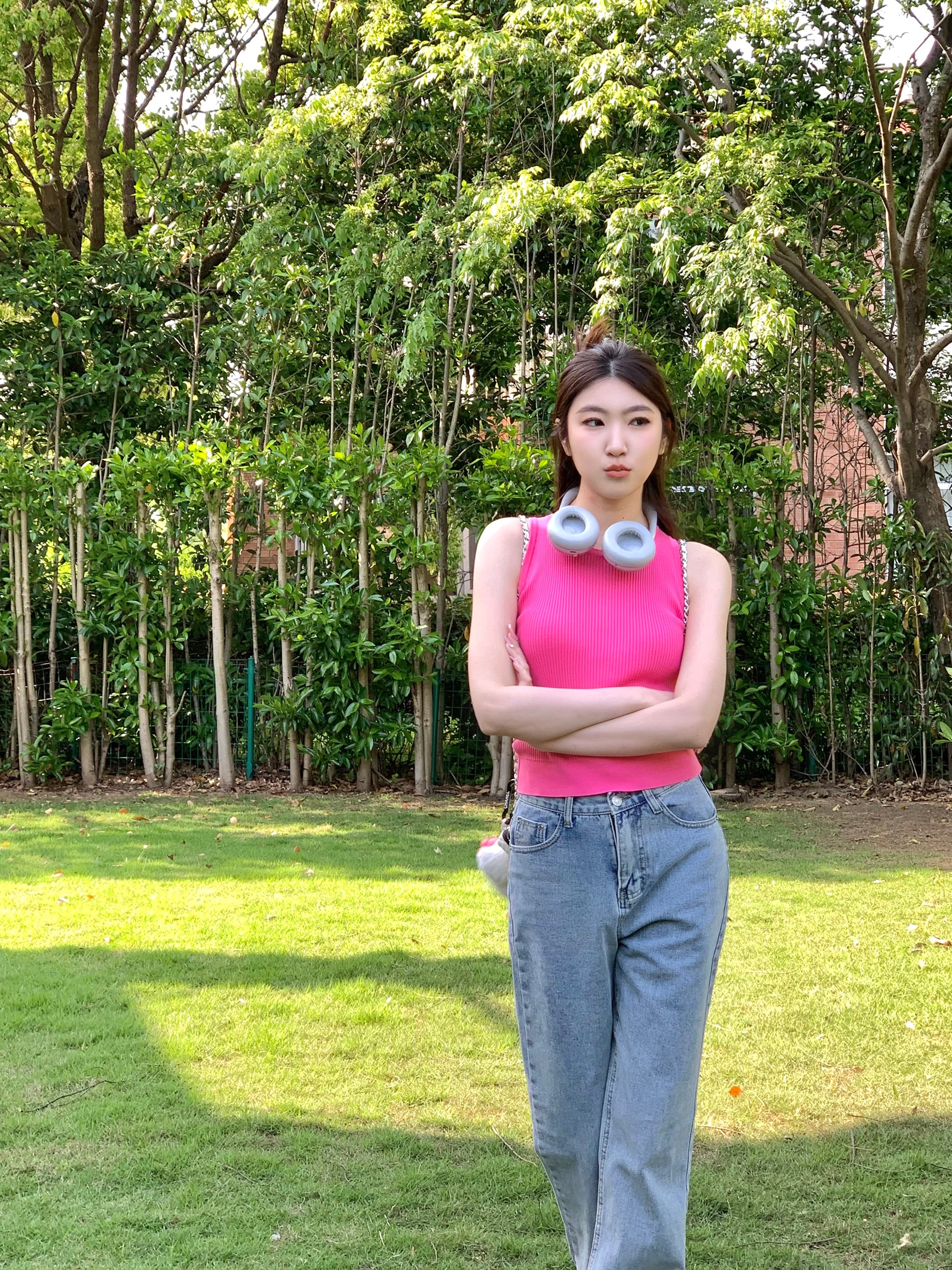 Chanel Rose Red Knitted Tank Top Size:36