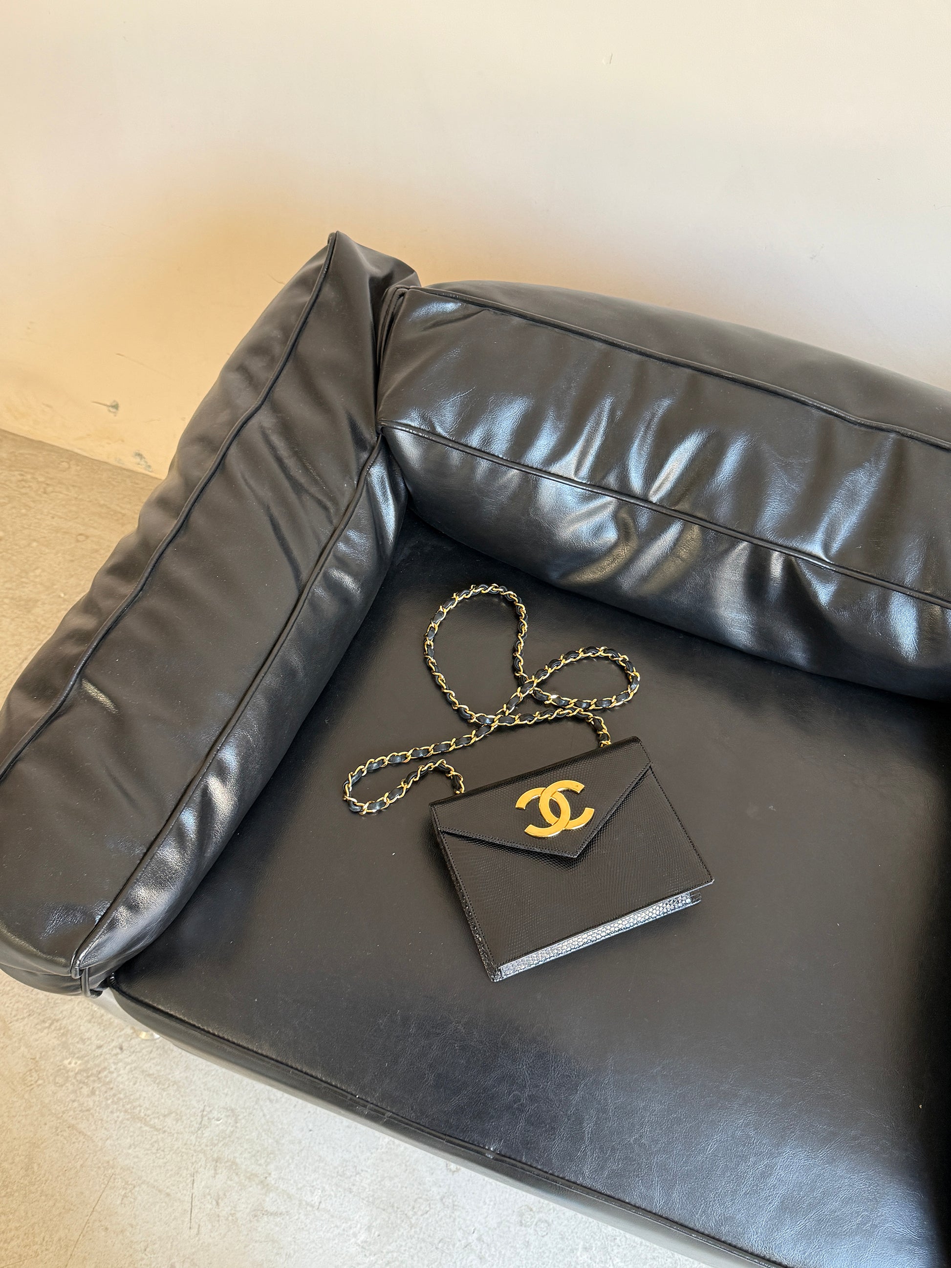 Chanel vintage black and gold lizard skin envelope bag